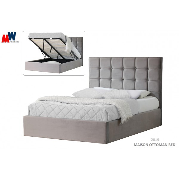 MAISON Ottoman Bed is an Elegance Upholstered Ottoman beds where the mattress laid on slats that can be lifted up from the foot of the bed to give the whole Under bed, a useful storage space for you to store anything you like neatly and out of messy sight in your bedroom.